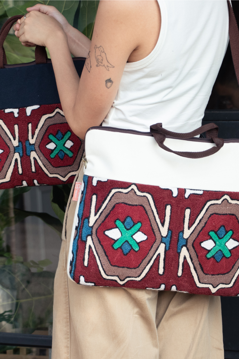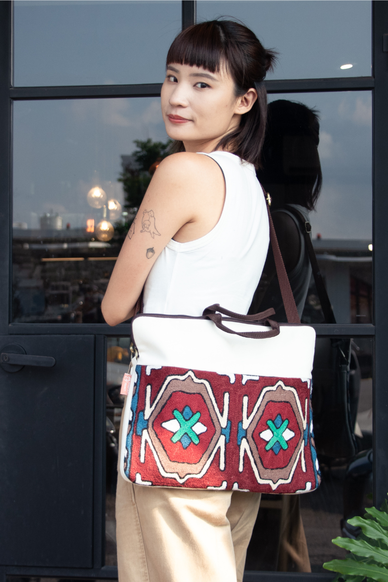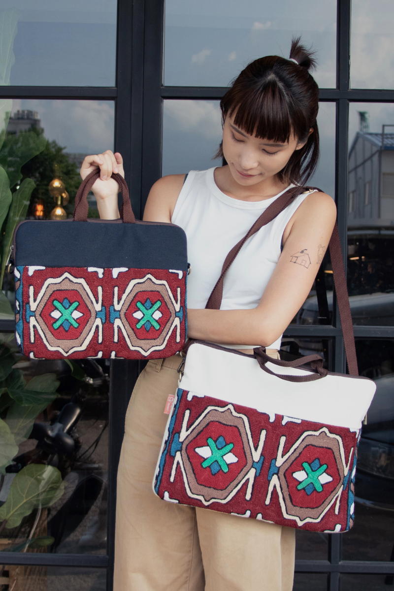 來自 Kashmir 喀什米爾高原,流傳千年的地毯編織手藝,每個圖騰都是來自遠方的故事帶它出門,陪伴你上學或是上班都超級加分,為日常生活注入一些繽紛一些溫暖。