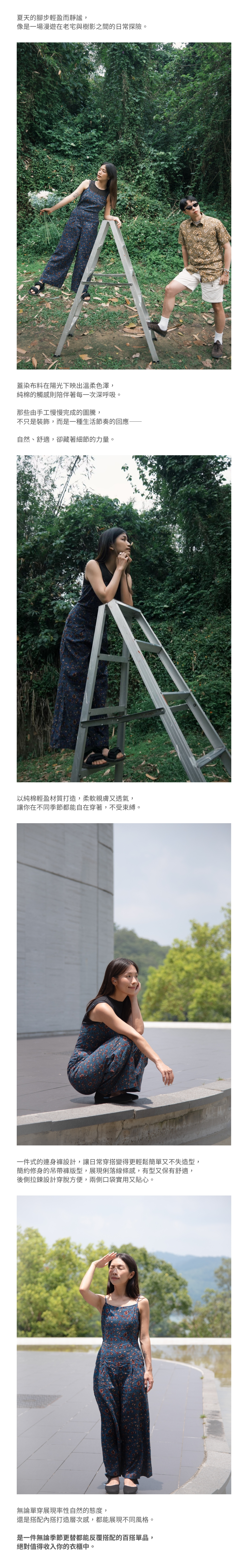 純棉的輕盈材質配上繽紛蓋染印花,一件式吊帶褲讓穿搭輕鬆自在又不失造型!
