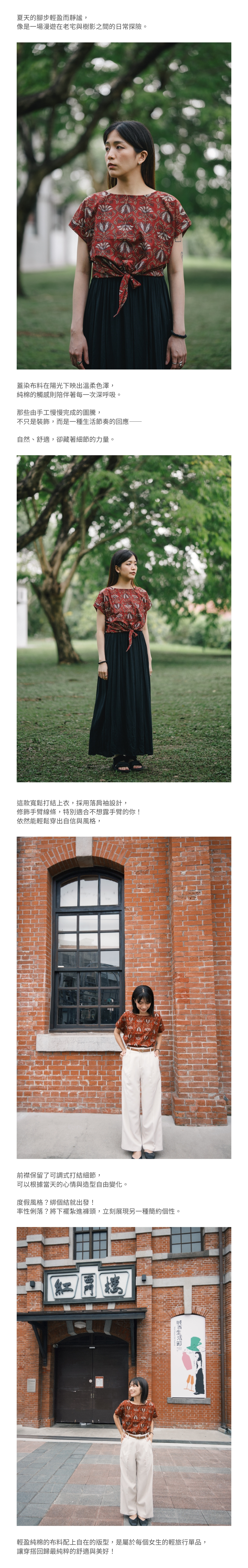 印度蓋染工藝親膚純棉 打結上衣 - 山茶花紅