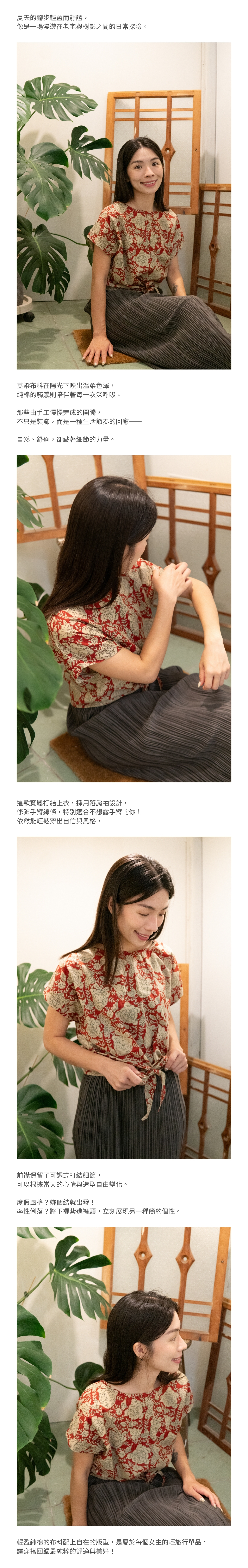 印度蓋染工藝親膚純棉 打結上衣 - 牡丹花紅
