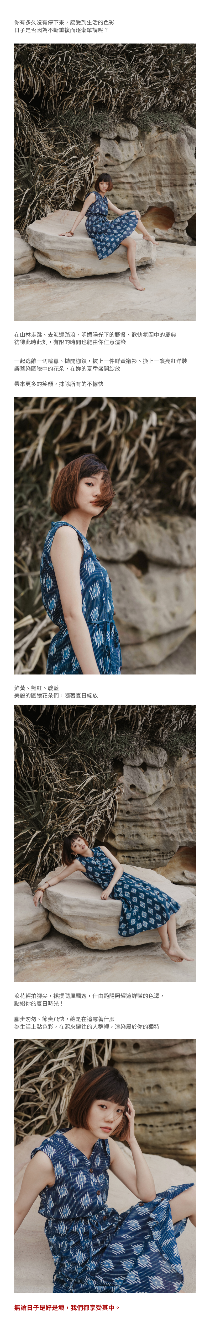 源自於 12 世紀的蓋染手工藝,經由整染、曝曬、蓋染等多道工法,搭配輕膚透氣的印度純棉,最用心的手蓋花紋,適合最認真出去玩的你。