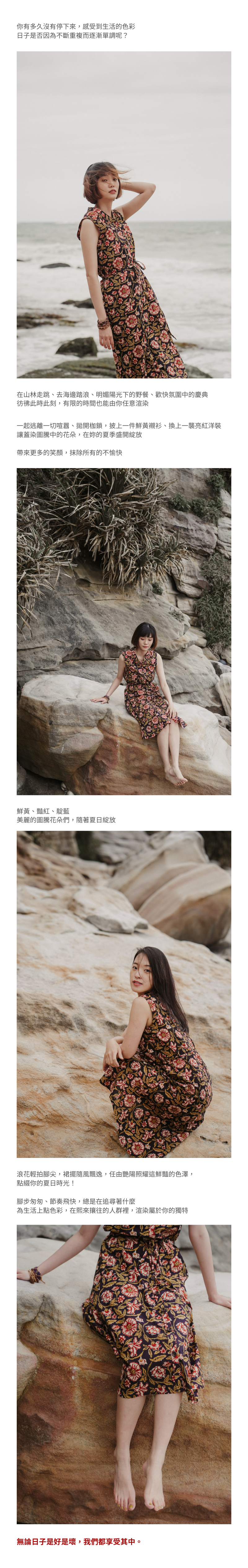 源自於 12 世紀的蓋染手工藝,經由整染、曝曬、蓋染等多道工法,搭配輕膚透氣的印度純棉,最用心的手蓋花紋,適合最認真出去玩的你。