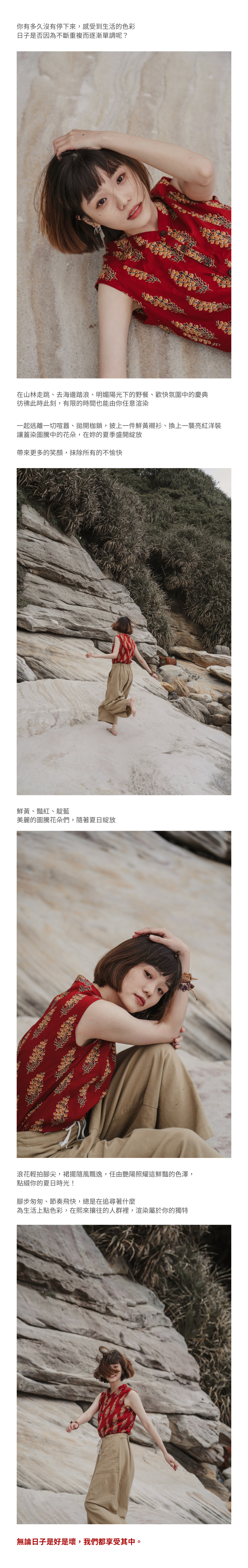 源自於 12 世紀的蓋染手工藝,經由整染、曝曬、蓋染等多道工法,搭配輕膚透氣的印度純棉,最用心的手蓋花紋,適合最認真出去玩的你。
