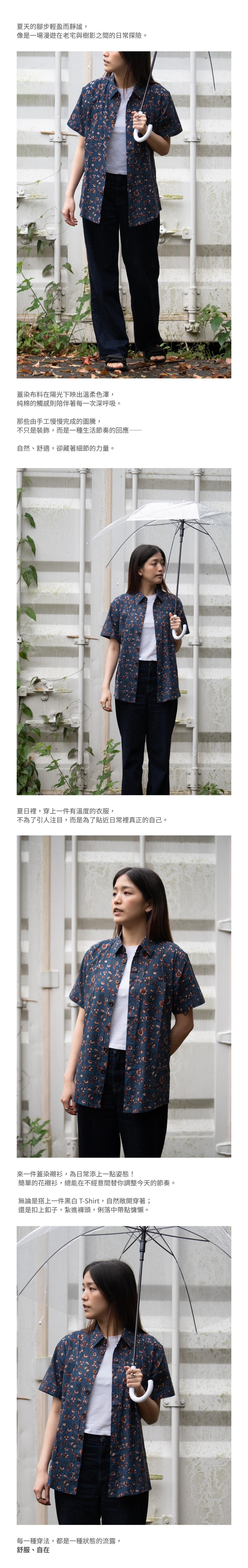 印度蓋染工藝親膚純棉 襯衫 - 藤蔓海藍