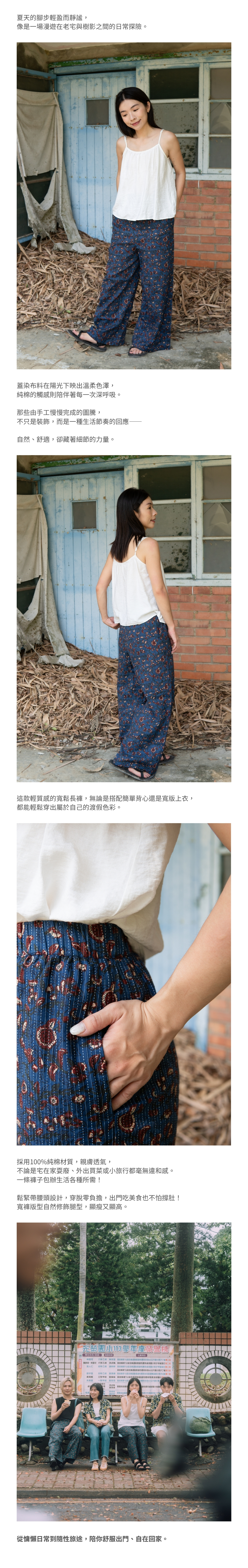 印度蓋染工藝親膚純棉 長褲 - 藤蔓海藍