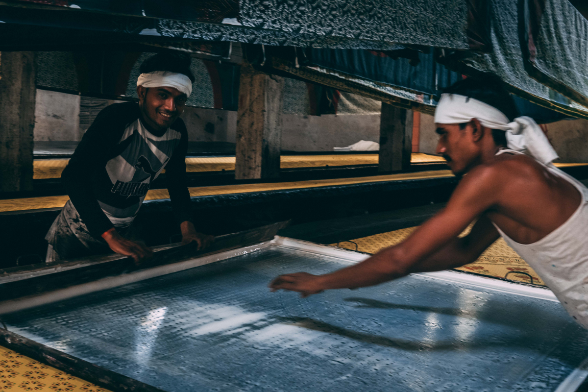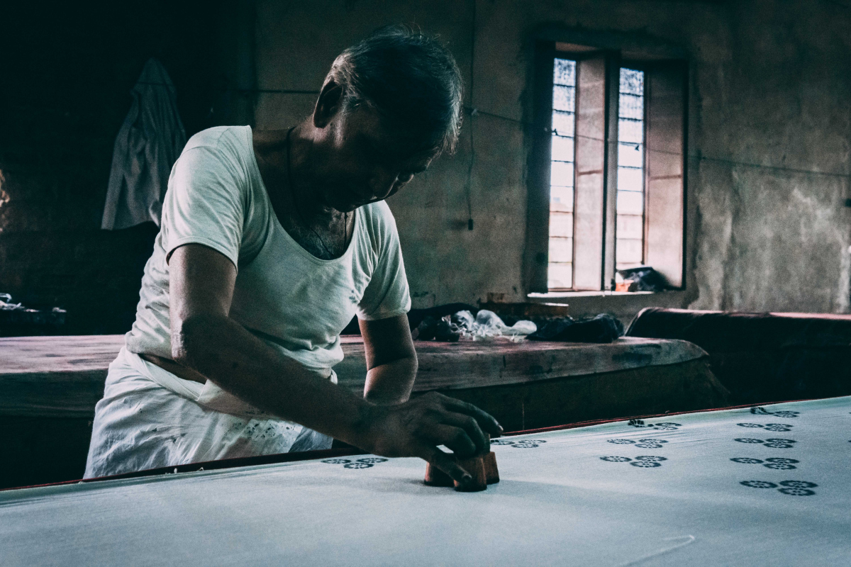 最初,印度人使用天然的植物顏色當作染料,一次次將布送進染劑池裡。